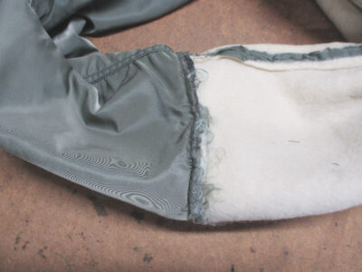MA-1フライトジャケットの襟、両袖、腰回りのリブニットを新しいものに交換していきます。