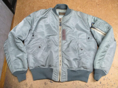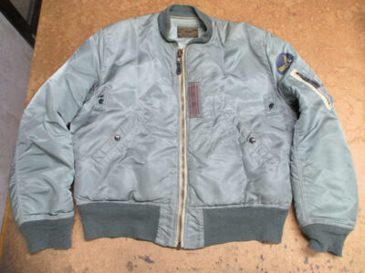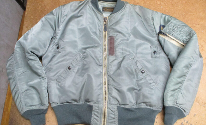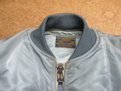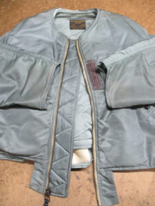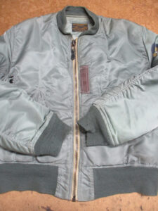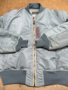 1枚目は来店されたお客さんの襟、両袖、腰回りのリブニットを新しく交換していく前のMA-1フライトジャケットです。