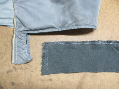 12枚目はMA-1フライトジャケットから襟、両袖、腰回りのリブニットを取り外した写真です。