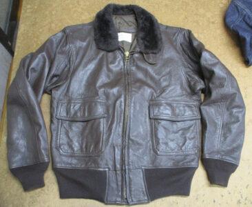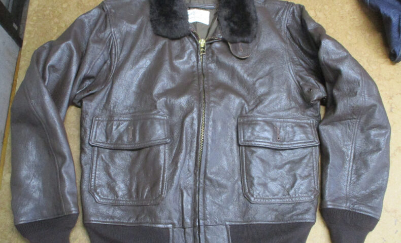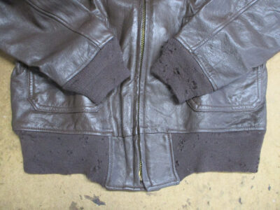 1枚目は栃木県からの郵送のお客さんの両袖と腰回りのリブニットを交換していく前のG-1フライトジャケットです。