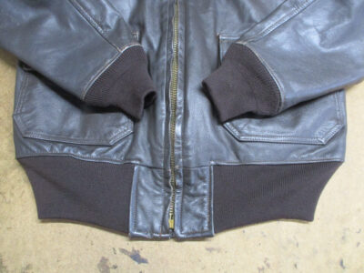 1枚目は神奈川県からの郵送のお客さんの両袖と腰回りのリブニットを交換していく前のG-1フライトジャケットです。
