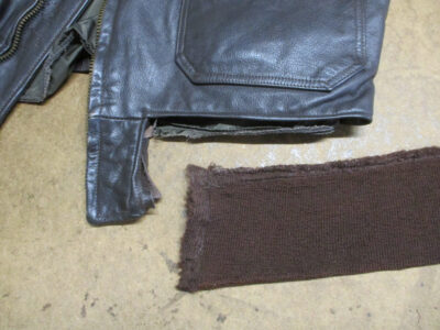 G-1フライトジャケットの両袖と腰回りのリブニットを新しく交換していきます。