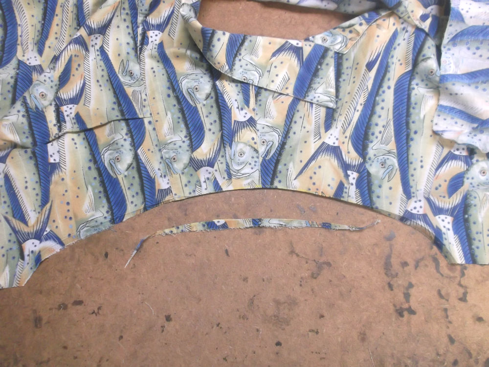 8枚目はアロハシャツの胴体の生地をカットした後の写真です。