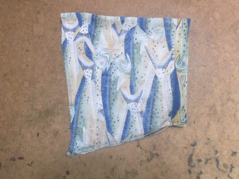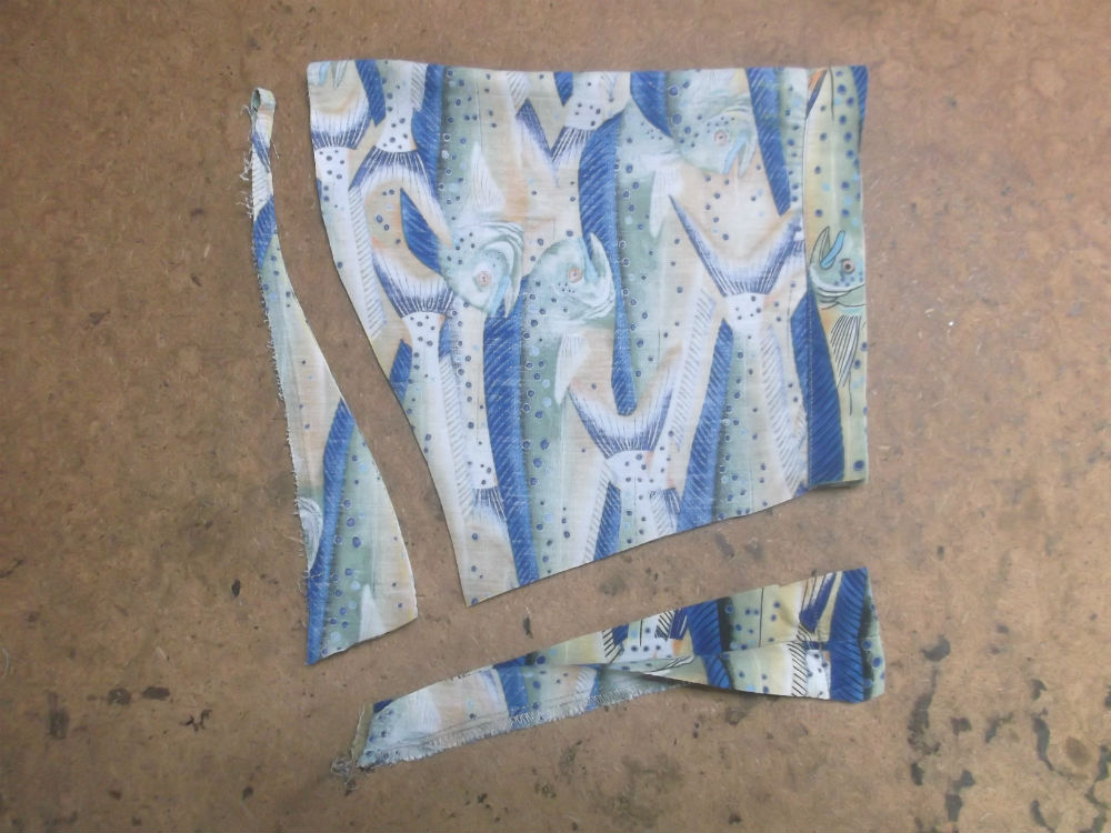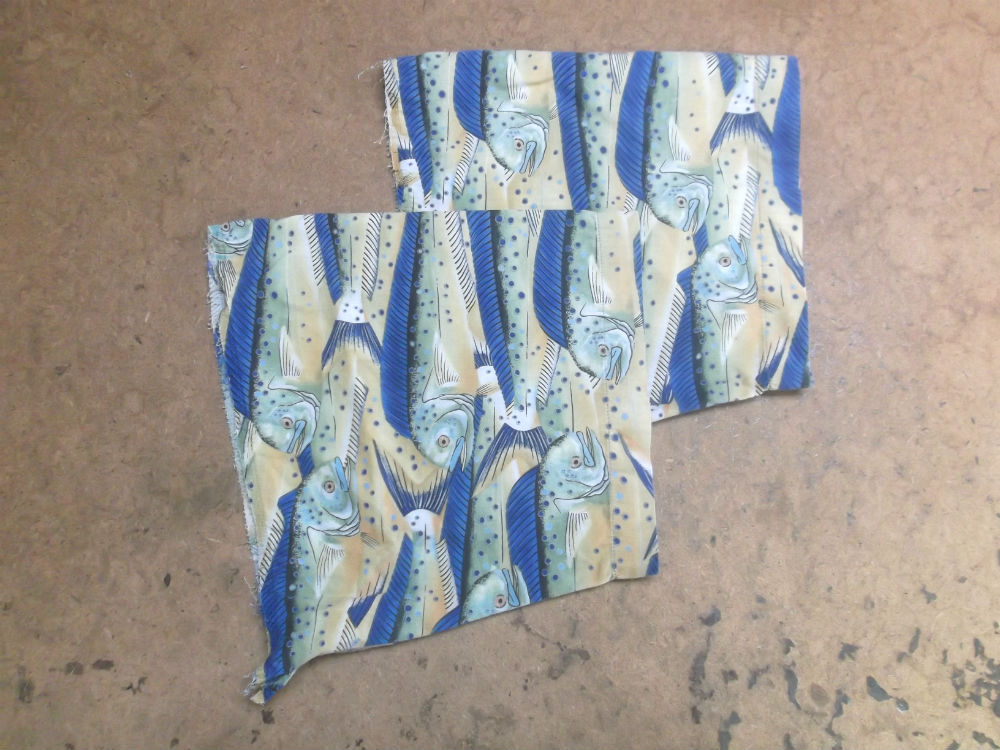 11枚目は袖のパーツの生地を見本の幅に合わせてカットした後の写真です。