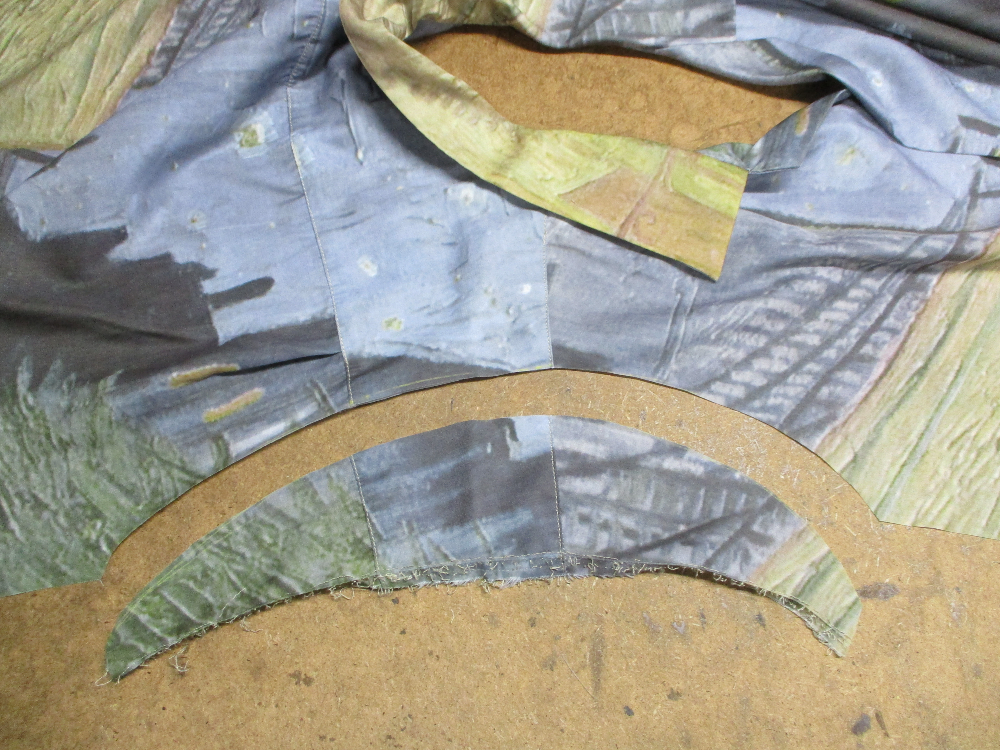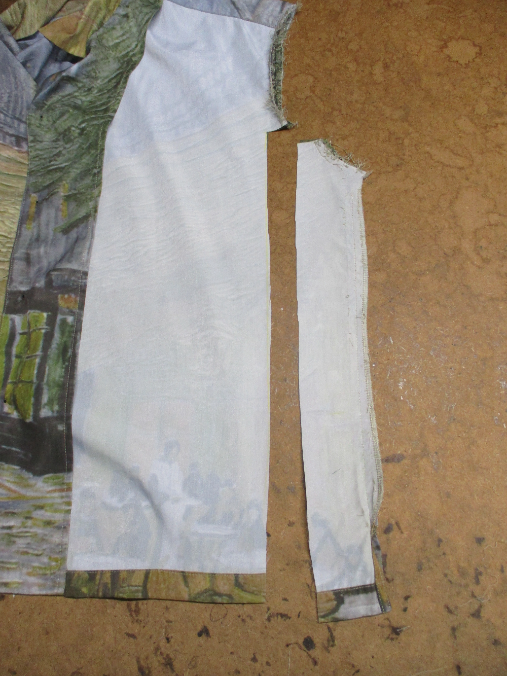 9枚目は胴体のアームホールの縫い目から取り外した左右の袖のパーツのサイズダウンをしていきます。