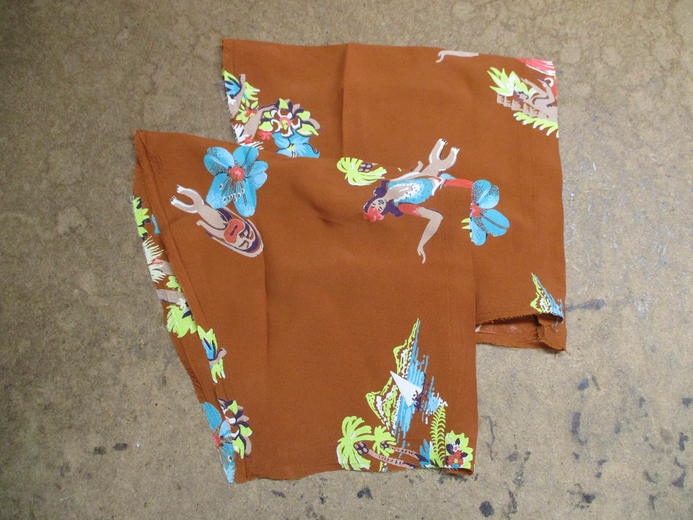 14枚目は袖幅を見本のアロハシャツの幅に合う様に生地をカットした写真です。