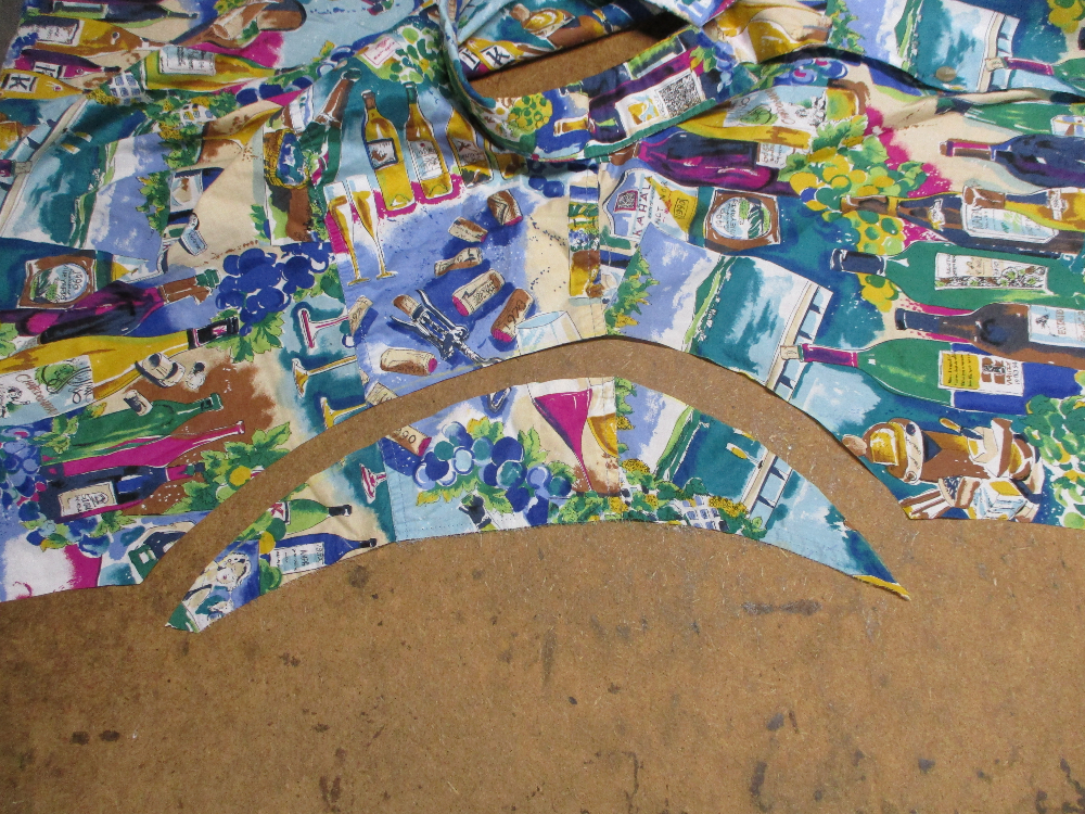 9枚目は袖のパーツの生地を見本のアロハシャツに合う様にカットしていきます。