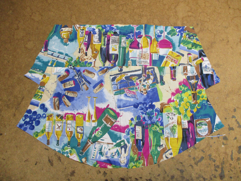 7枚目はアロハシャツの胴体の肩幅、身幅、裾幅の生地をカットした写真です。