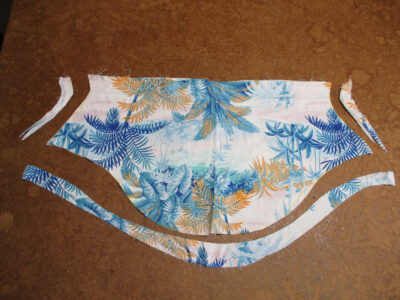 9枚目は袖のパーツの生地を仕上がりサイズに合わせてカットしていきます。