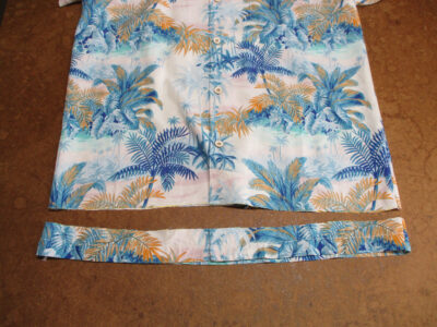 1枚目は長崎県からの郵送のお客さんにおサイズを小さくしていくアロハシャツの写真です。