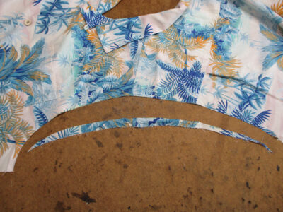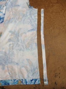 3枚目は脇から裾のサイドの生地をカットして仕上がりサイズに合うように作業を進めていきます。