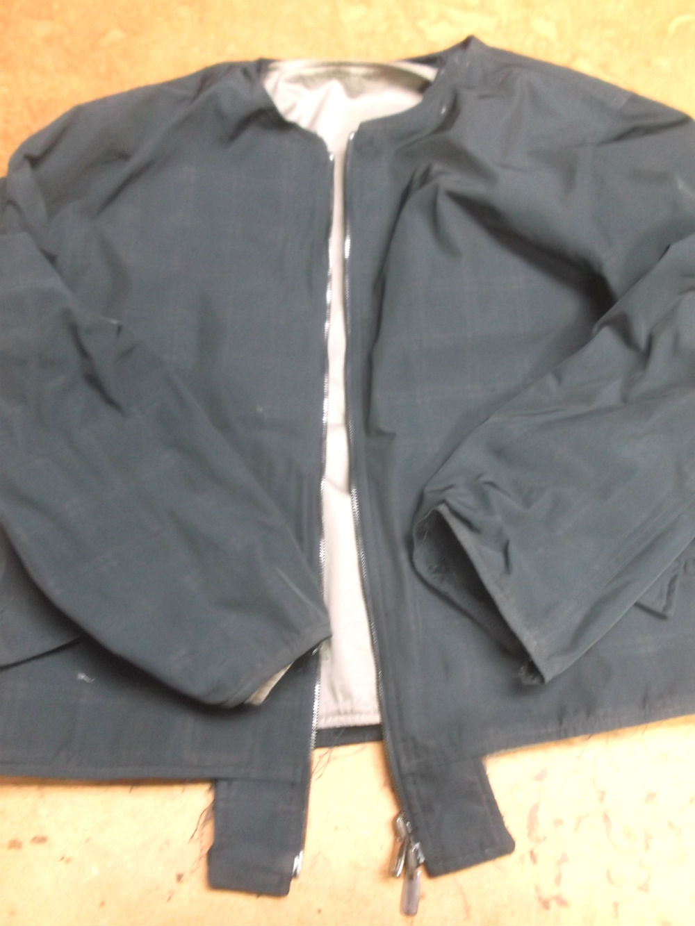 1枚目は東京都からの郵送のお客さんの襟と袖と腰回りを交換していく前のジャケットです。