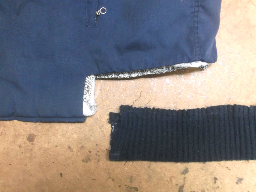 ジャケットの使い込んで伸びたリブニットを新しいものに交換 アウターニットパーツ取り換え