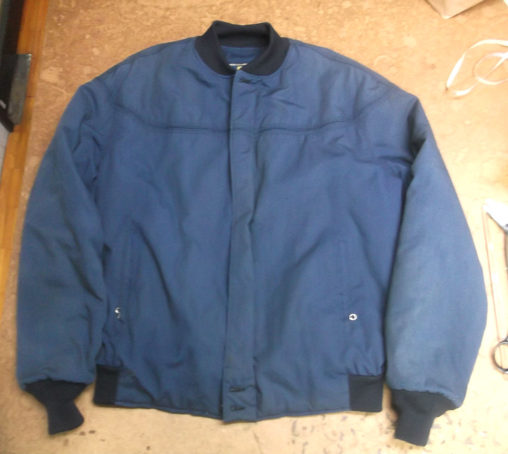 17枚目はジャケットに襟、両袖、腰回りに新しいリブニットを取り付けた後の写真です。