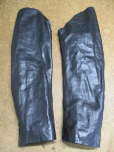 1枚目は栃木県からの郵送のお客さんの肩口から袖丈を短く仕上げていくレザーPコートです。