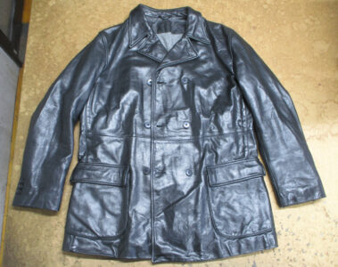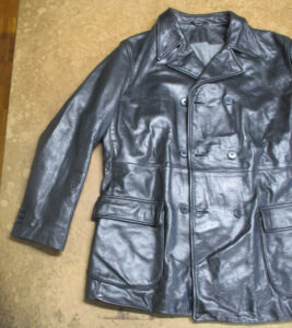 9枚目は10枚目目との比較で袖丈を短くしていく前のレザーPコートです。