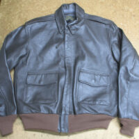 サイズ感の目安はジャケットを着ていただいて肘をいっぱいに曲げて肘辺りのレザーが張らずに