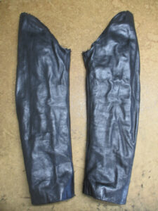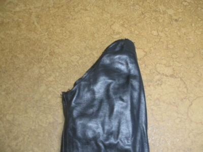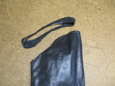 6枚目は裏地の袖山の生地も表のレザー部分と同じ長さをカットしていきます。