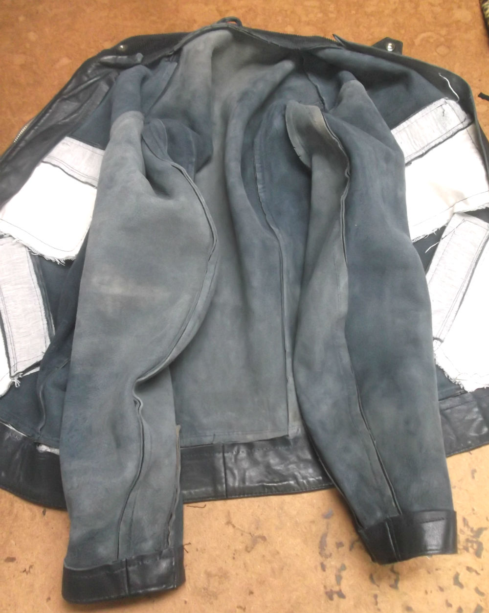 5枚目はレザージャケットから裏地を取り外した後の写真です。