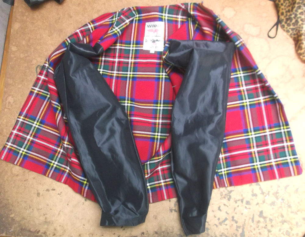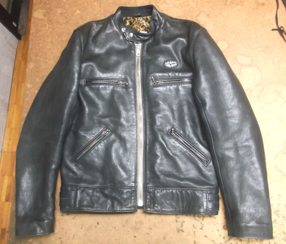 ルイスレザーズのジャケットの裏地をお客さんの気に入った柄の生地に交換 レザージャケット裏地取り換え