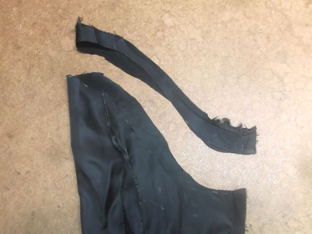 7枚目は裏地の袖丈の生地をカットした後の写真です。
