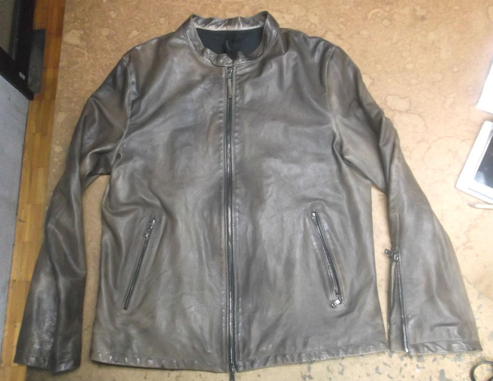 1枚目は来店されたお客さんの袖丈を短くしていく前のレザージャケットです。