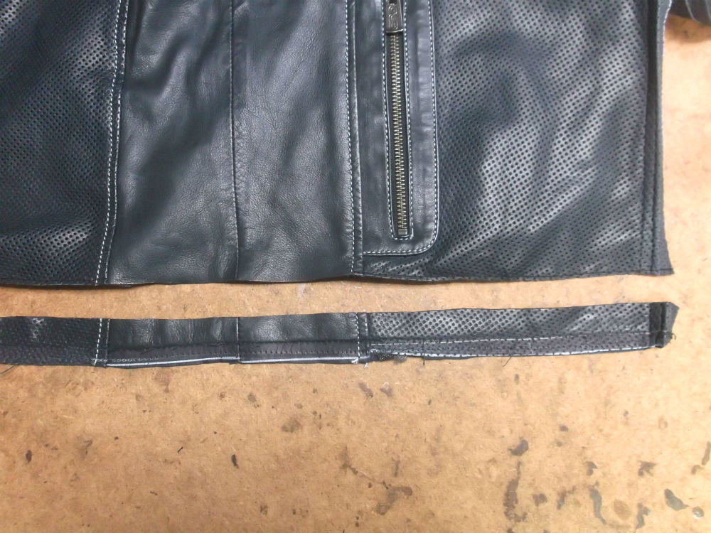12枚目は脇から裾のサイドのレザーをカットした後の写真です。