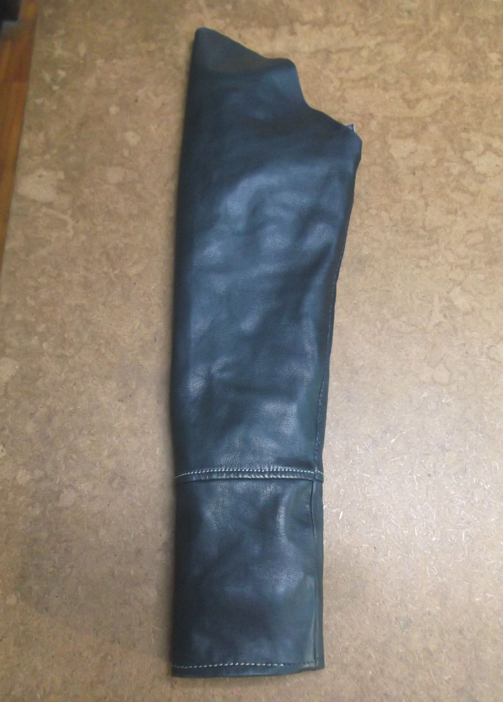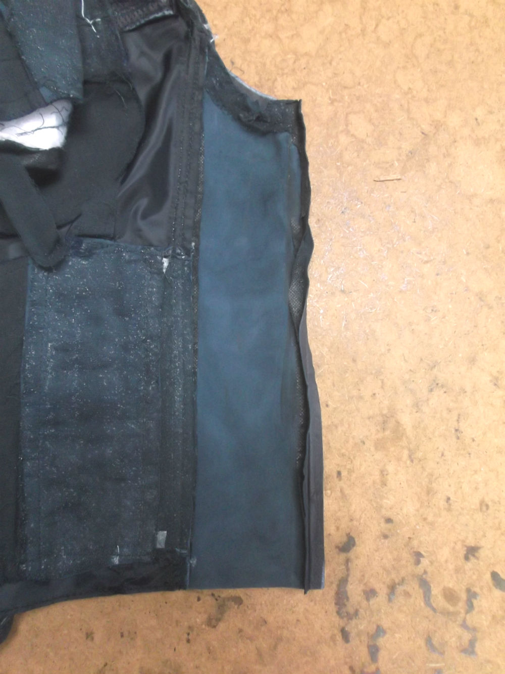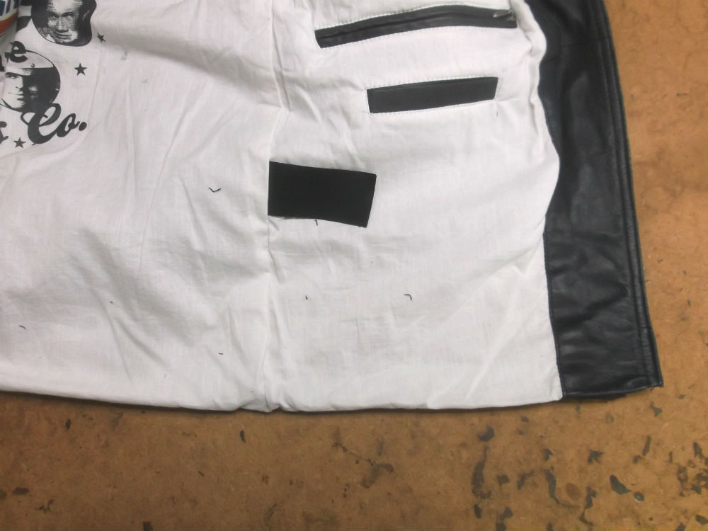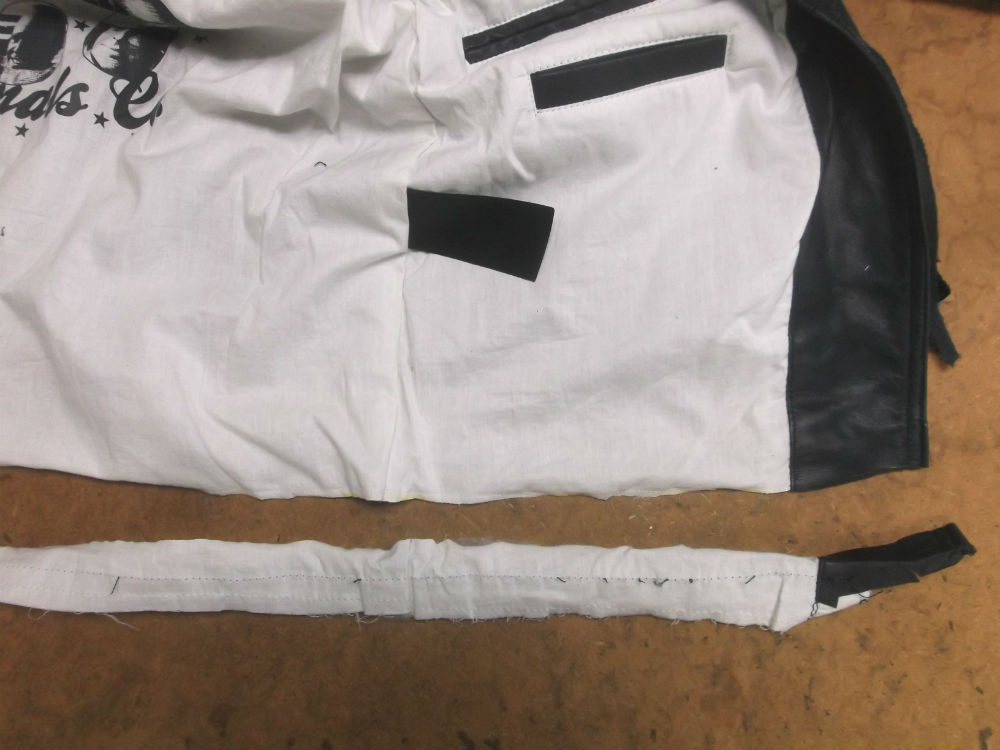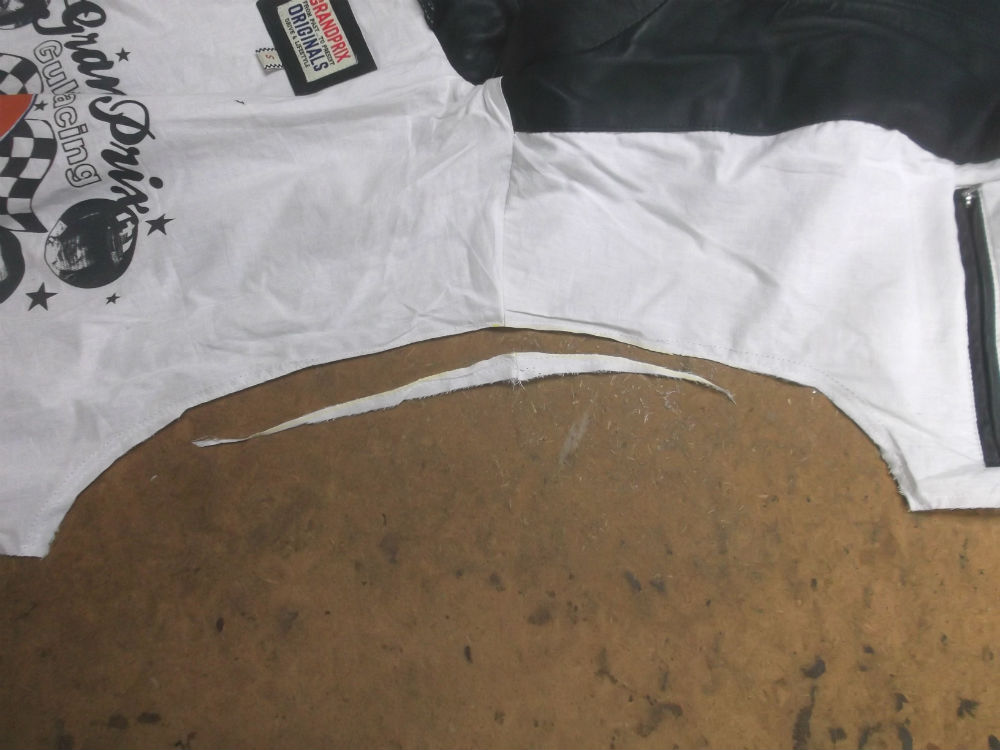 10枚目は着丈の裾のレザーと裏地の生地をカットした後の胴体の写真です。