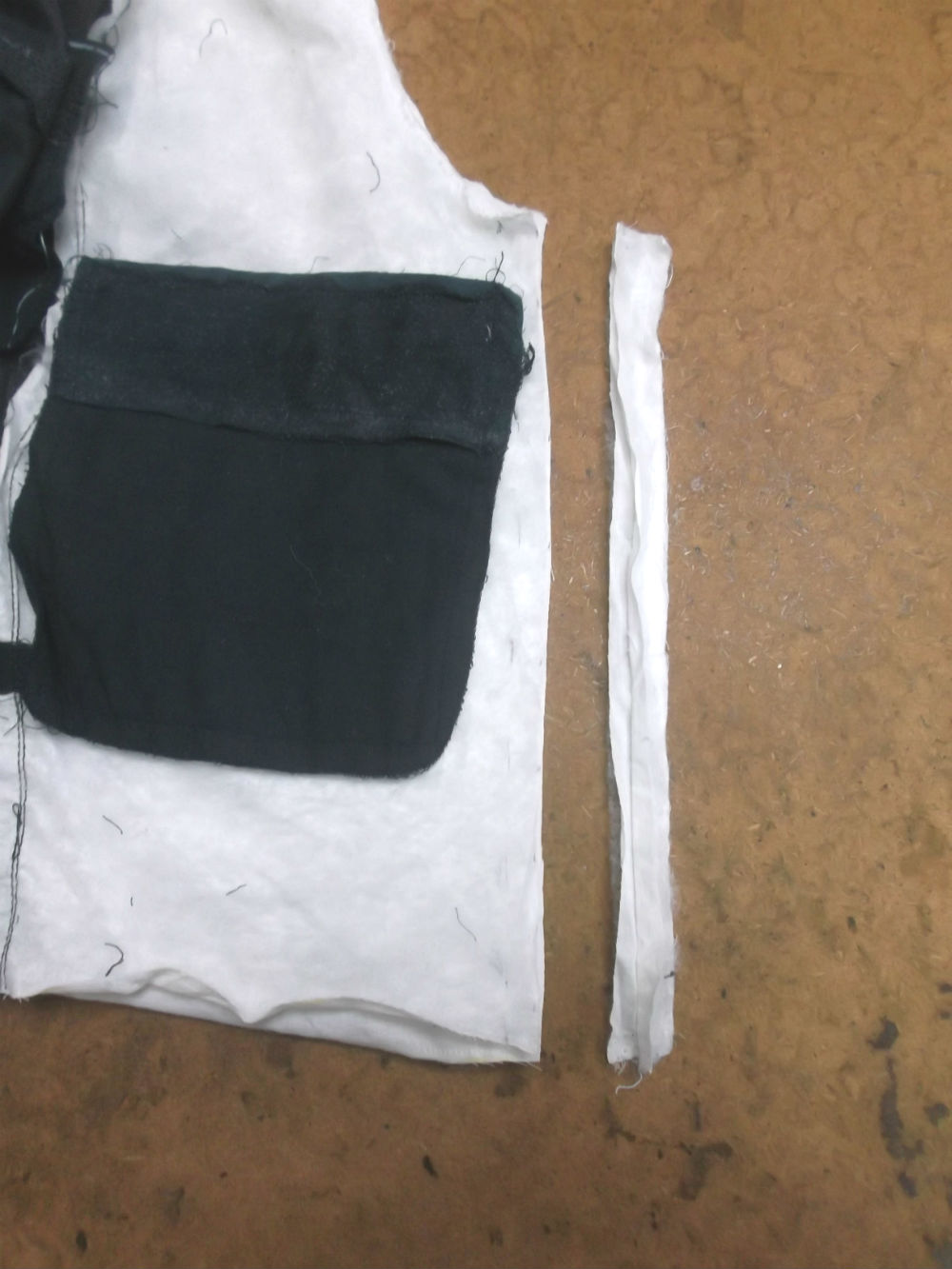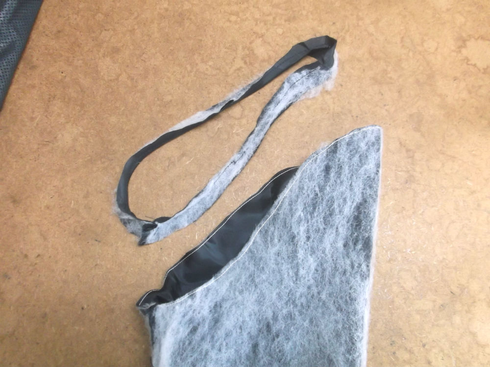 18枚目は裏地の肩幅の生地をカットした後の写真です。