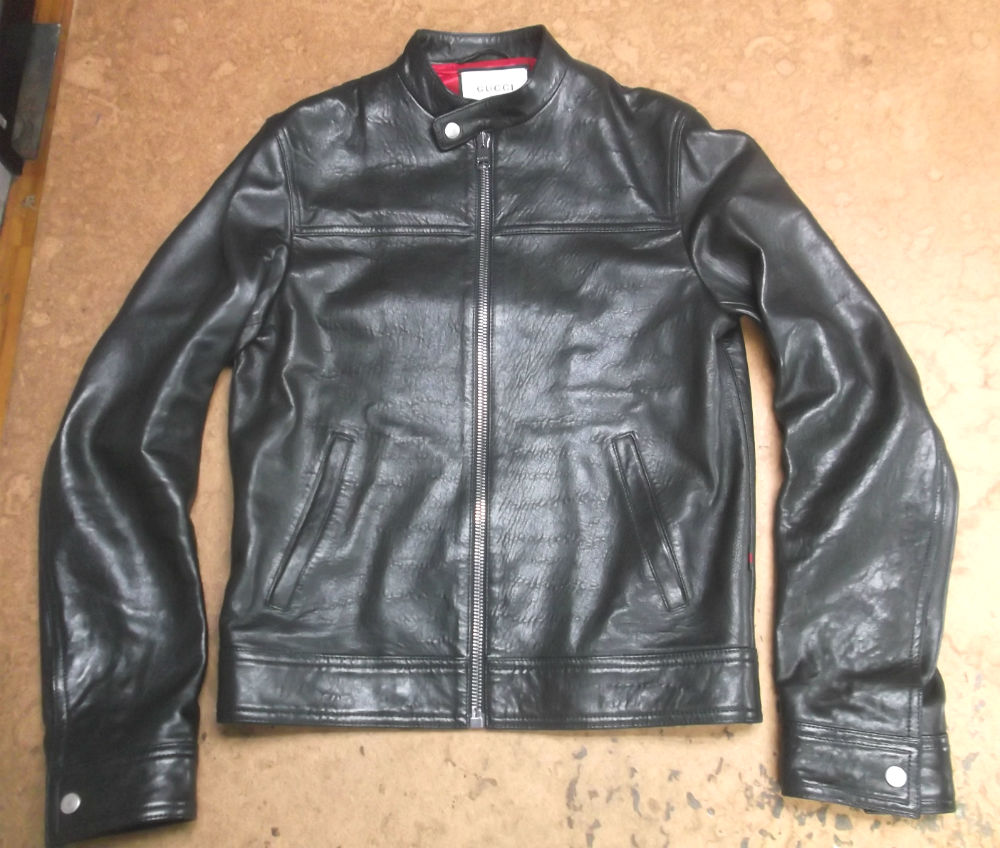 1枚目は来店されたお客さんのグッチの長い袖丈のレザージャケットです。