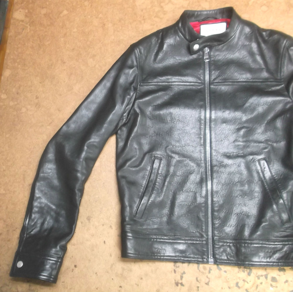 長い袖丈のGUCCIのレザージャケットをお客さんの好みの長さに短くリサイズ 革ジャン袖丈詰め直し