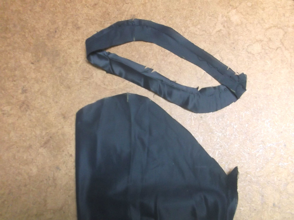 7枚目は裏地の袖山の生地をカットした後の写真です。
