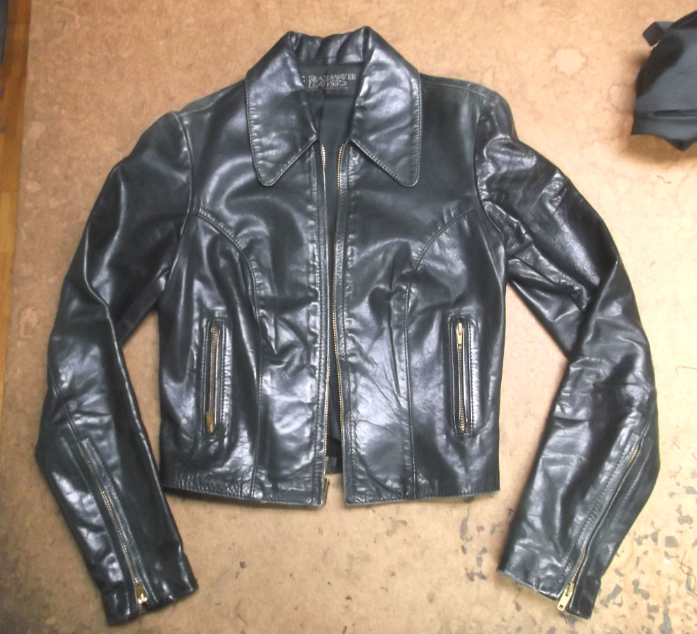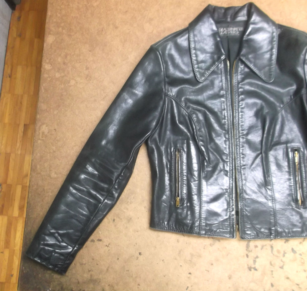 9枚目は長い袖丈を袖山から短くした後のレザージャケットです。