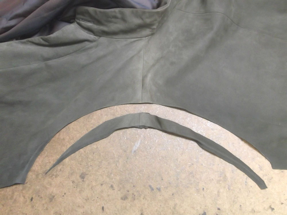 4枚目は脇から裾のサイドのレザーをカットした後の写真です。