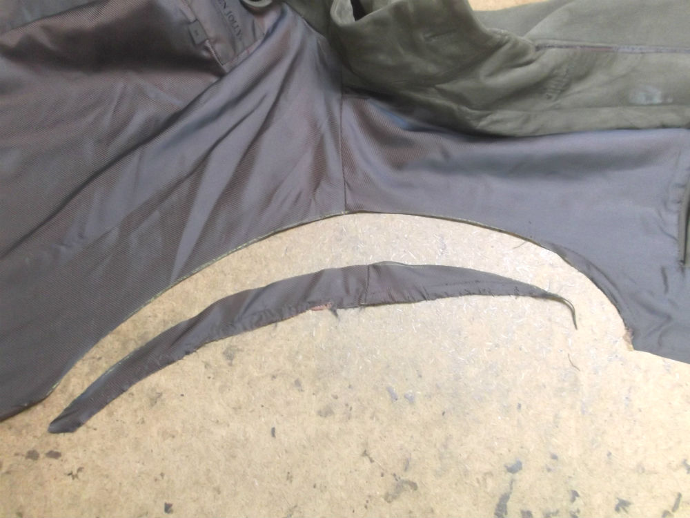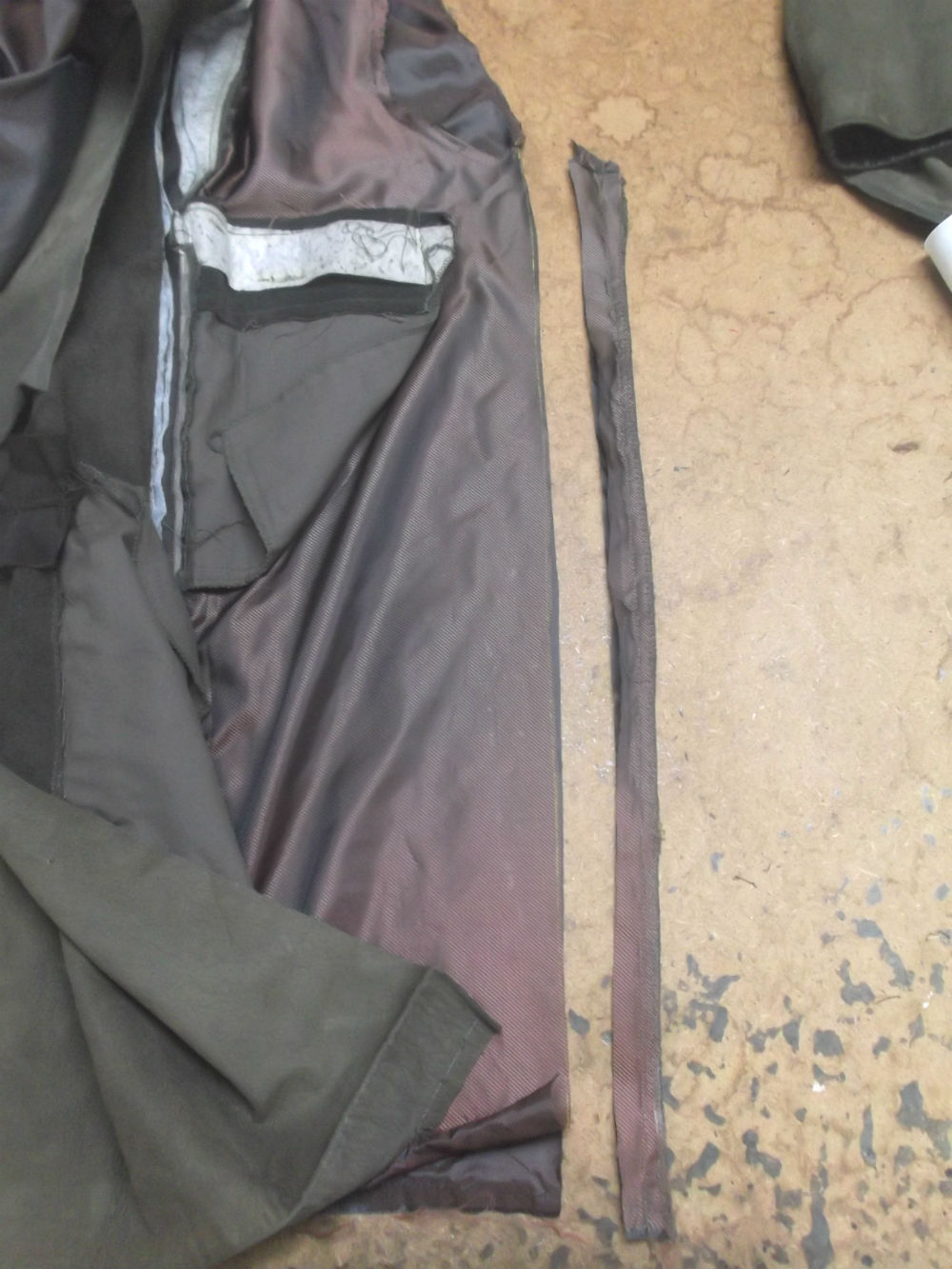 8枚目は裏地の脇から裾のサイドの生地をカットした後の写真です。