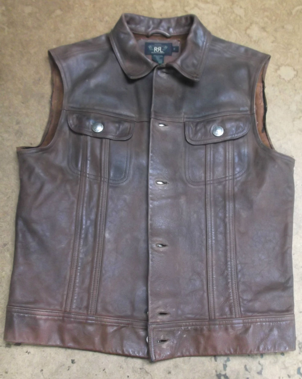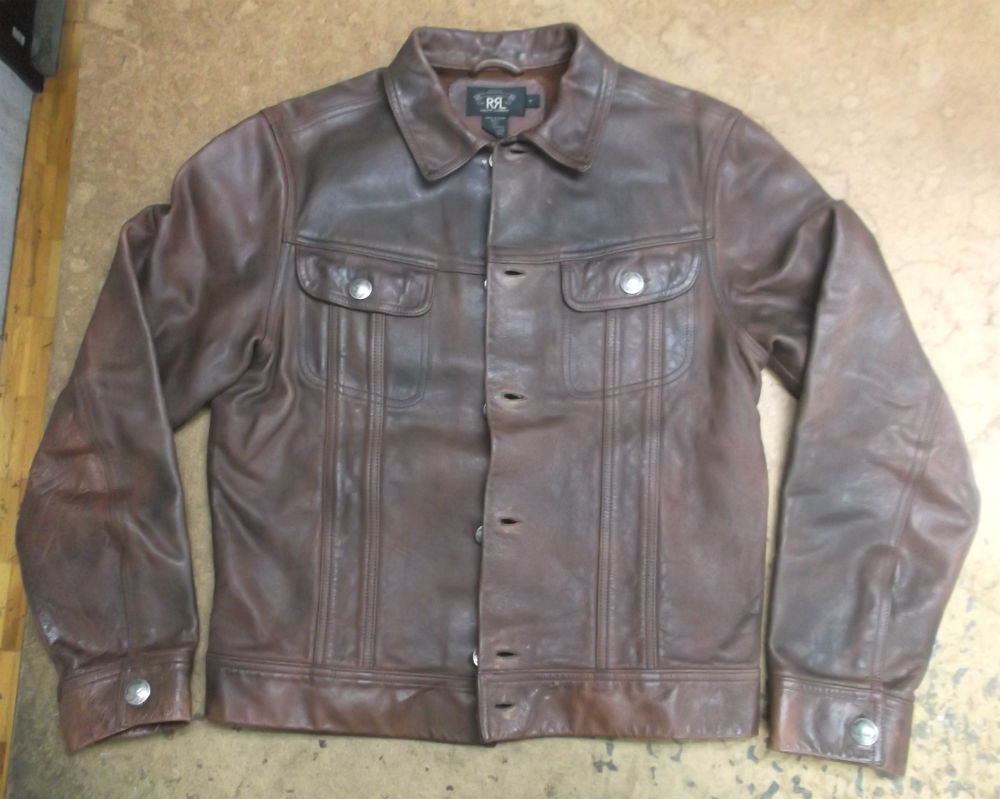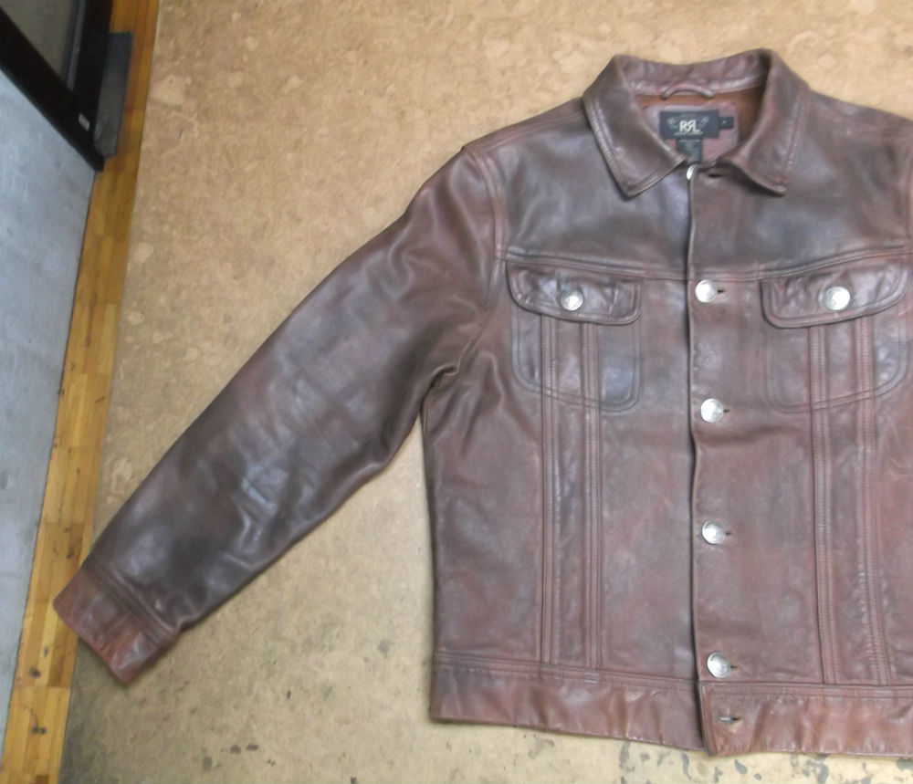 長い袖丈のRRLのレザージャケットをお客さんの好みの長さに短くリサイズ 革ジャン寸法詰め直し