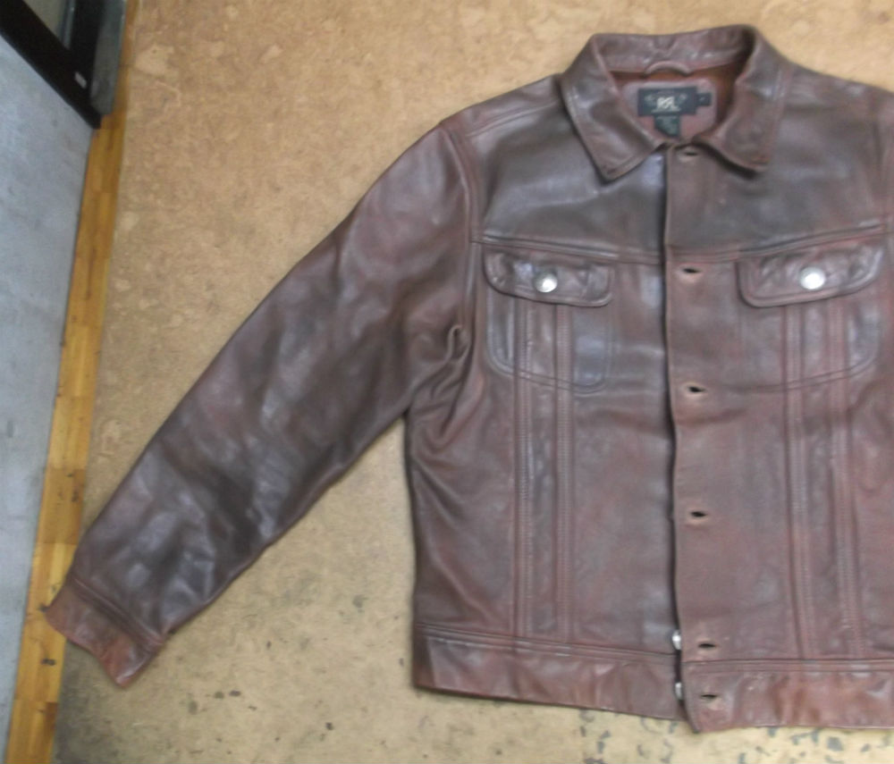 1枚目は奈良県からの郵送のお客さんの長い袖丈を短くしていく前のレザージャケットです。