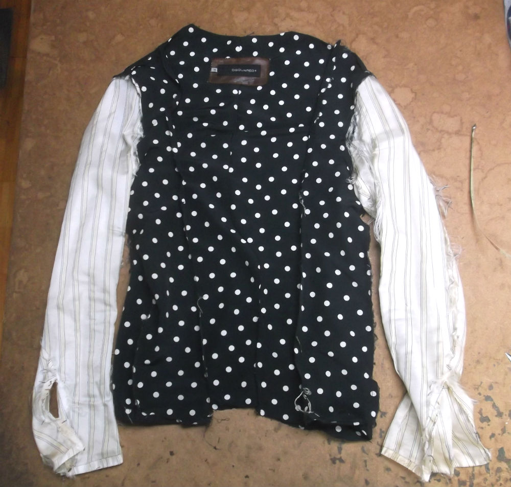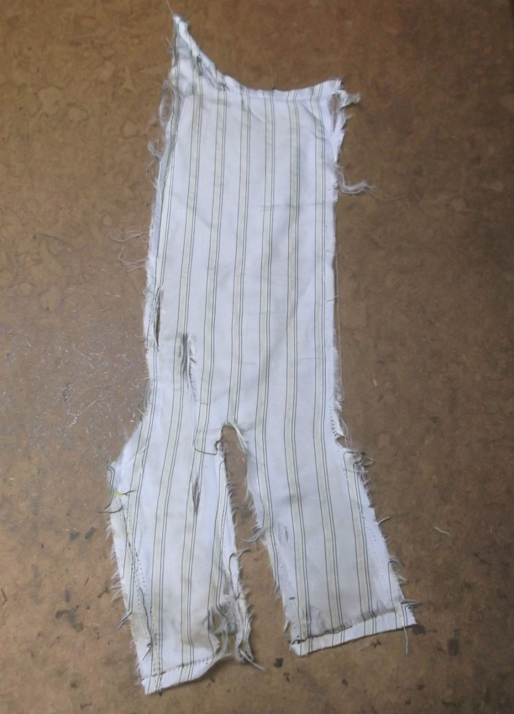 3枚目は袖の破れた白ベースの黒のラインの入ったストライプ柄の裏地です。