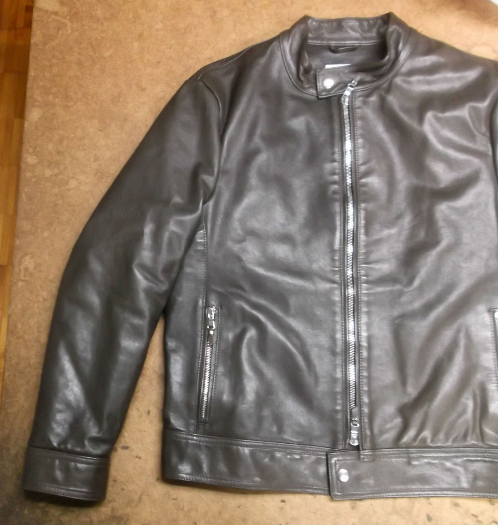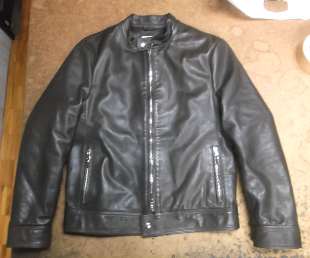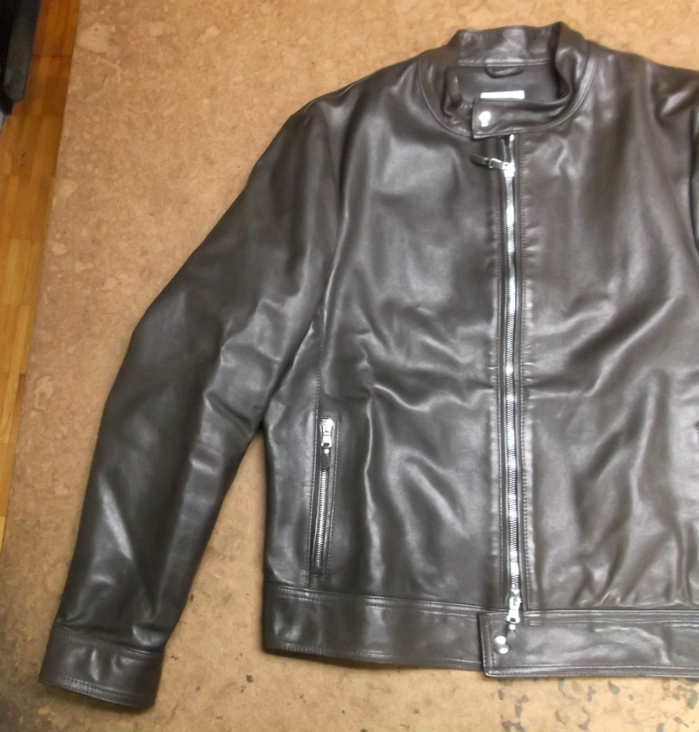9枚目は10枚目との比較で袖丈を短くしていく前のレザージャケットの写真です。
