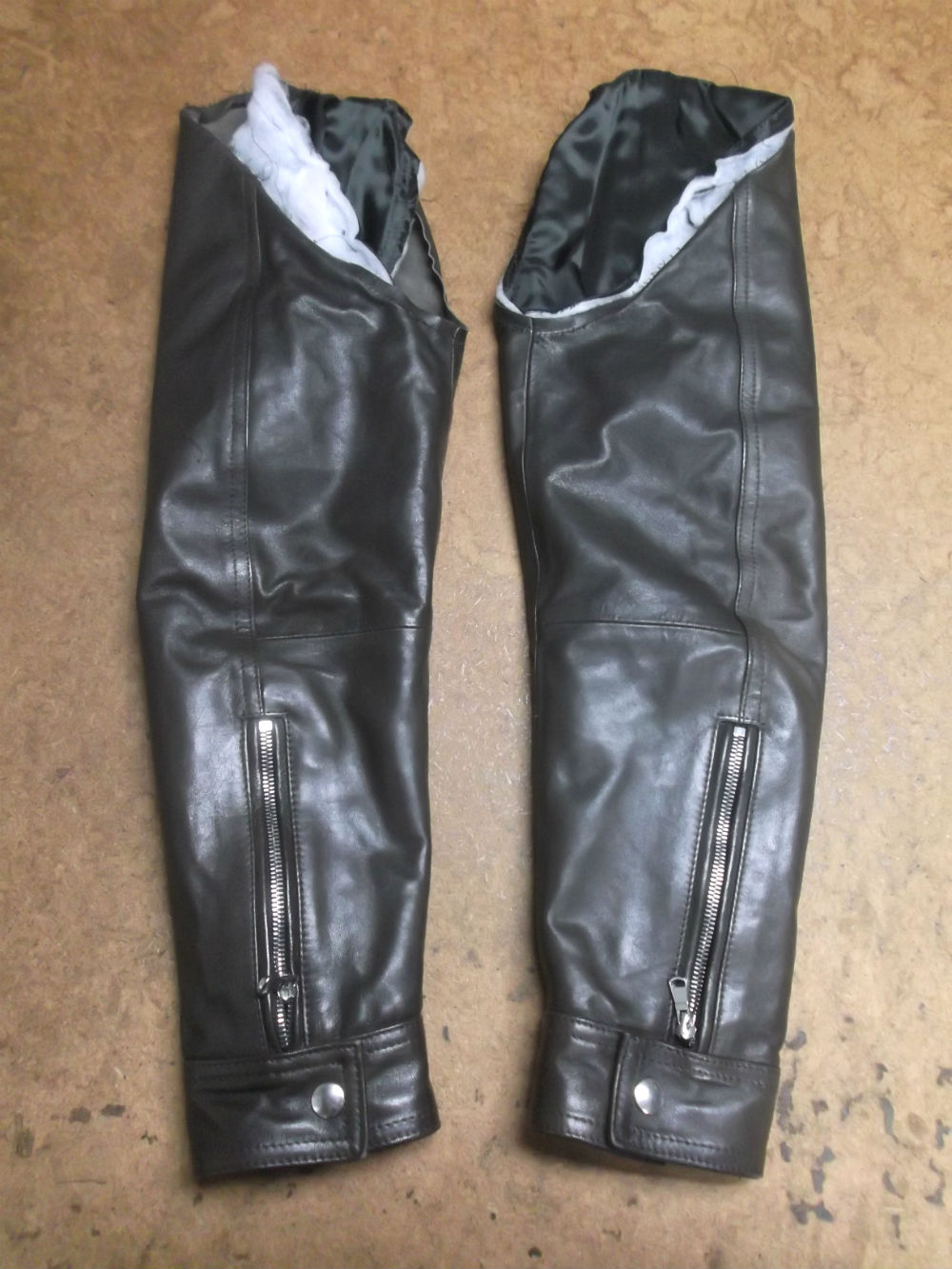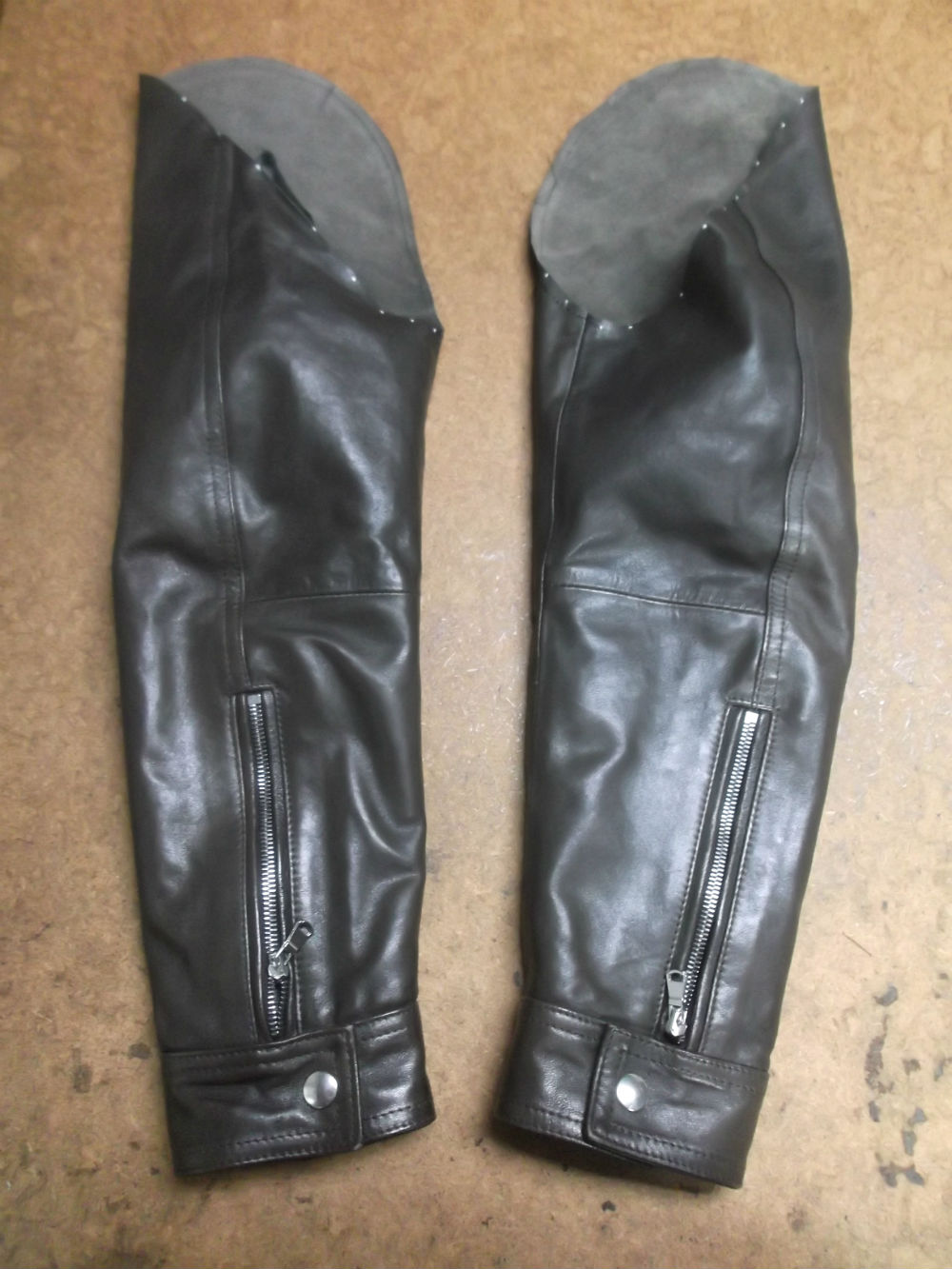 1枚目は神奈川県からの郵送のお客さんの長い袖丈を短くしていく前のレザージャケットです。