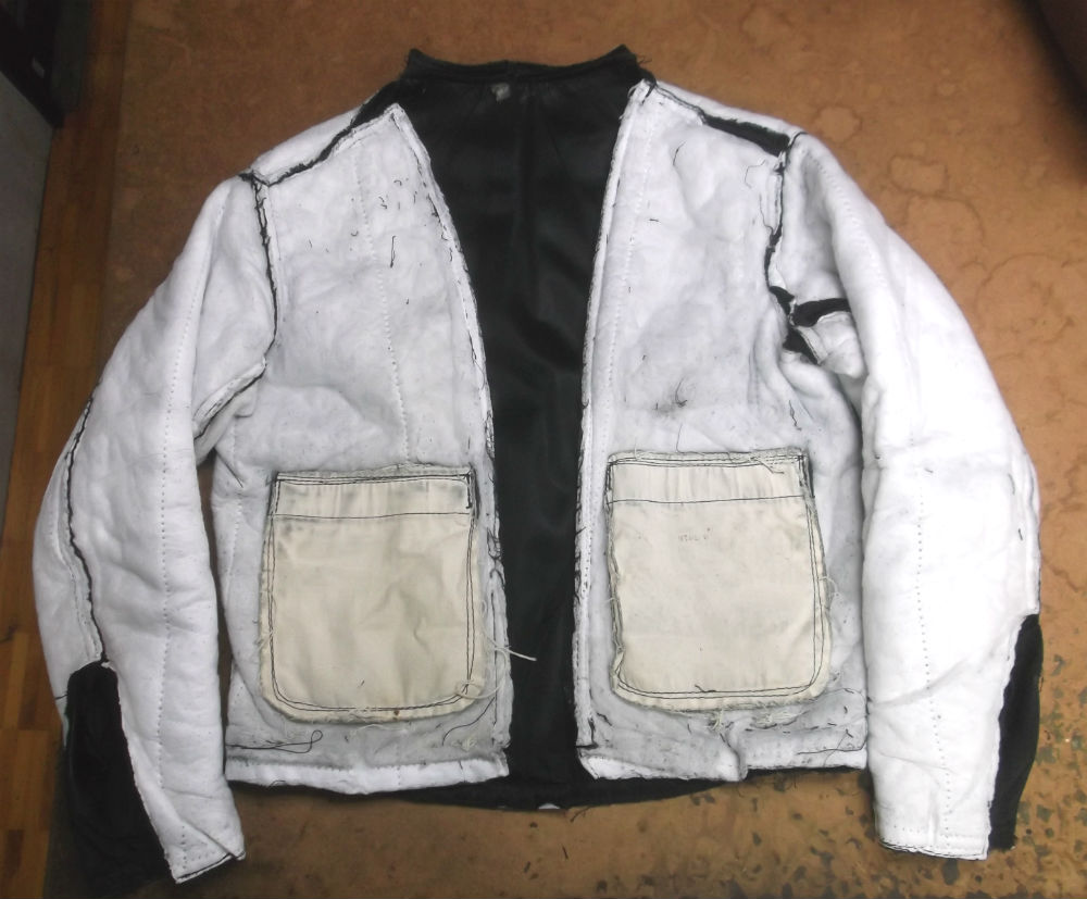 7枚目はレザージャケットから取り外した綿入りの裏地の写真です。