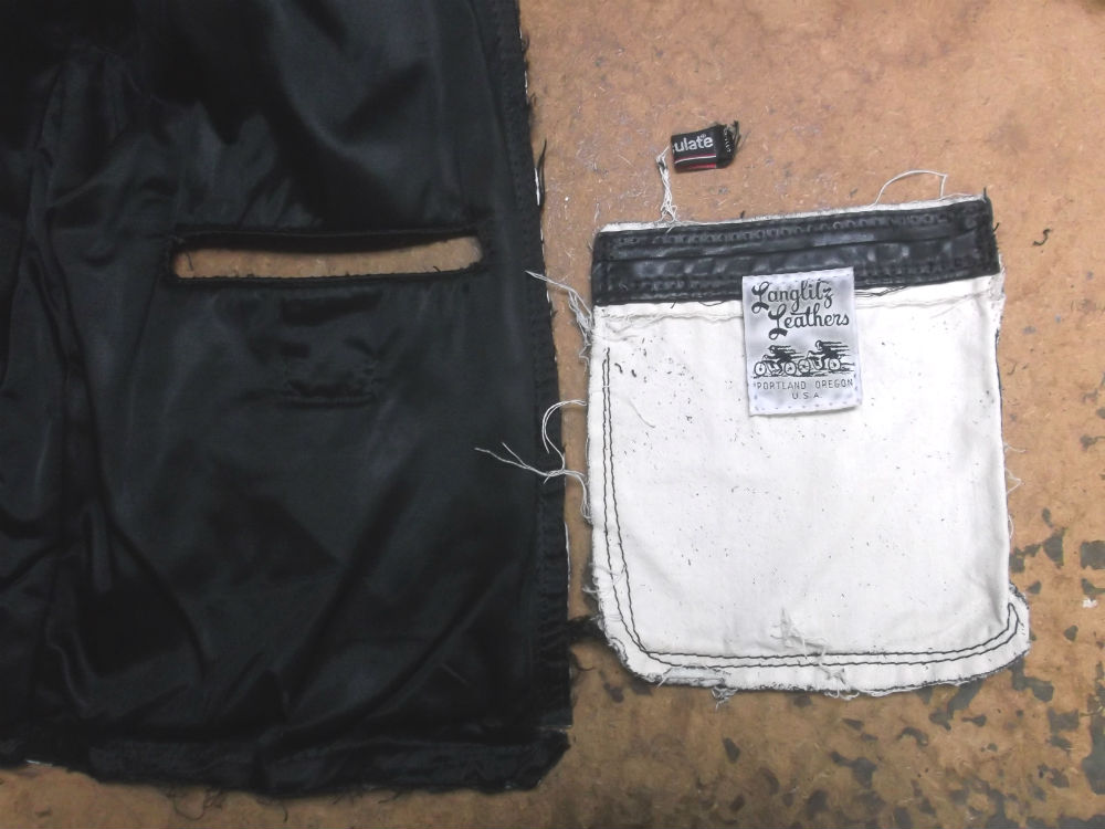 6枚目はレザージャケットから裏地を取り外した後の写真です。