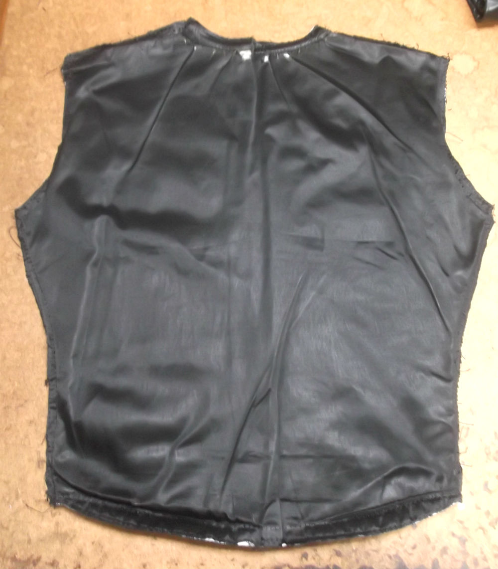 13枚目は新しいサテン生地で胴体の真ん中の裏地の方を取った後の写真です。