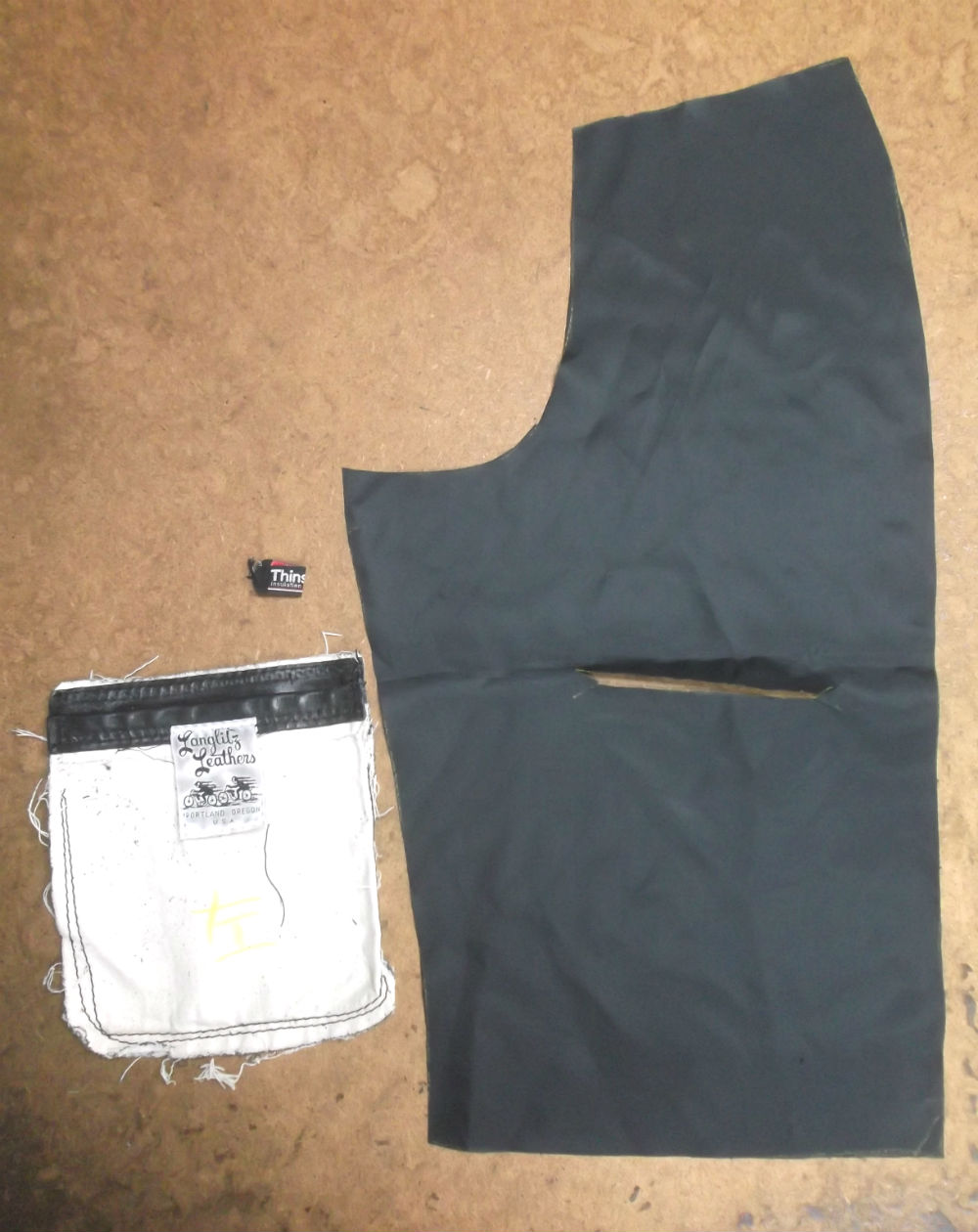 4枚目は内ポケット下にブランドタグが付いてますので取り外して新しい裏地に取り付けていきます。