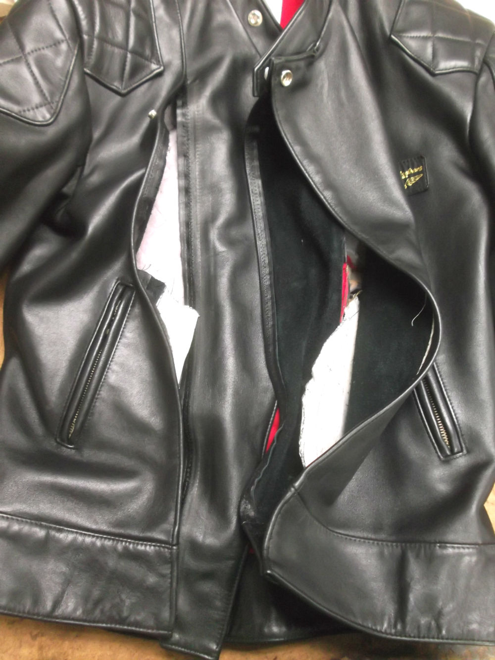 1枚目は富山県からの郵送のお客さんのオープンジッパーをダブルジッパーに交換していく前のレザージャケットです。
