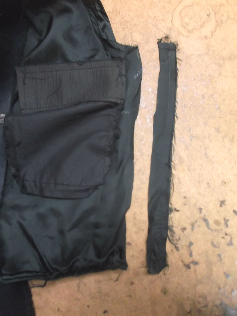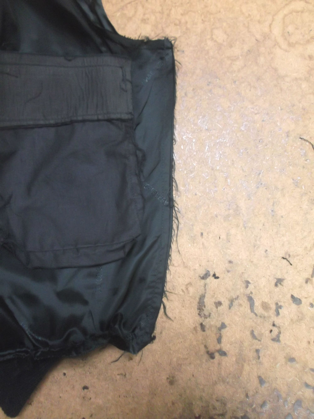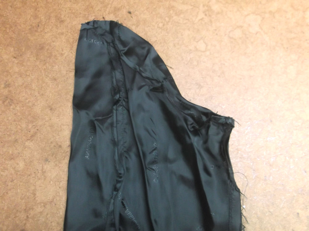 8枚目は裏地の脇から裾のサイドの生地をカットした後の写真です。