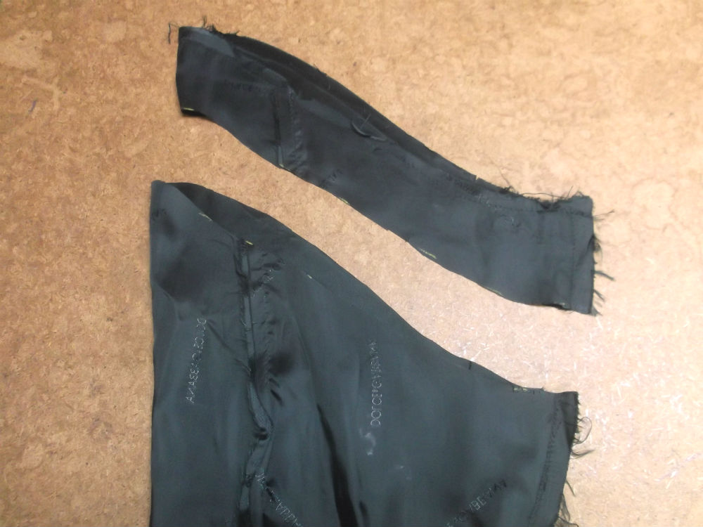 20枚目は裏地の袖丈の生地をカットした後の写真です。