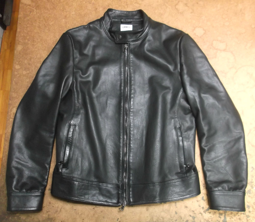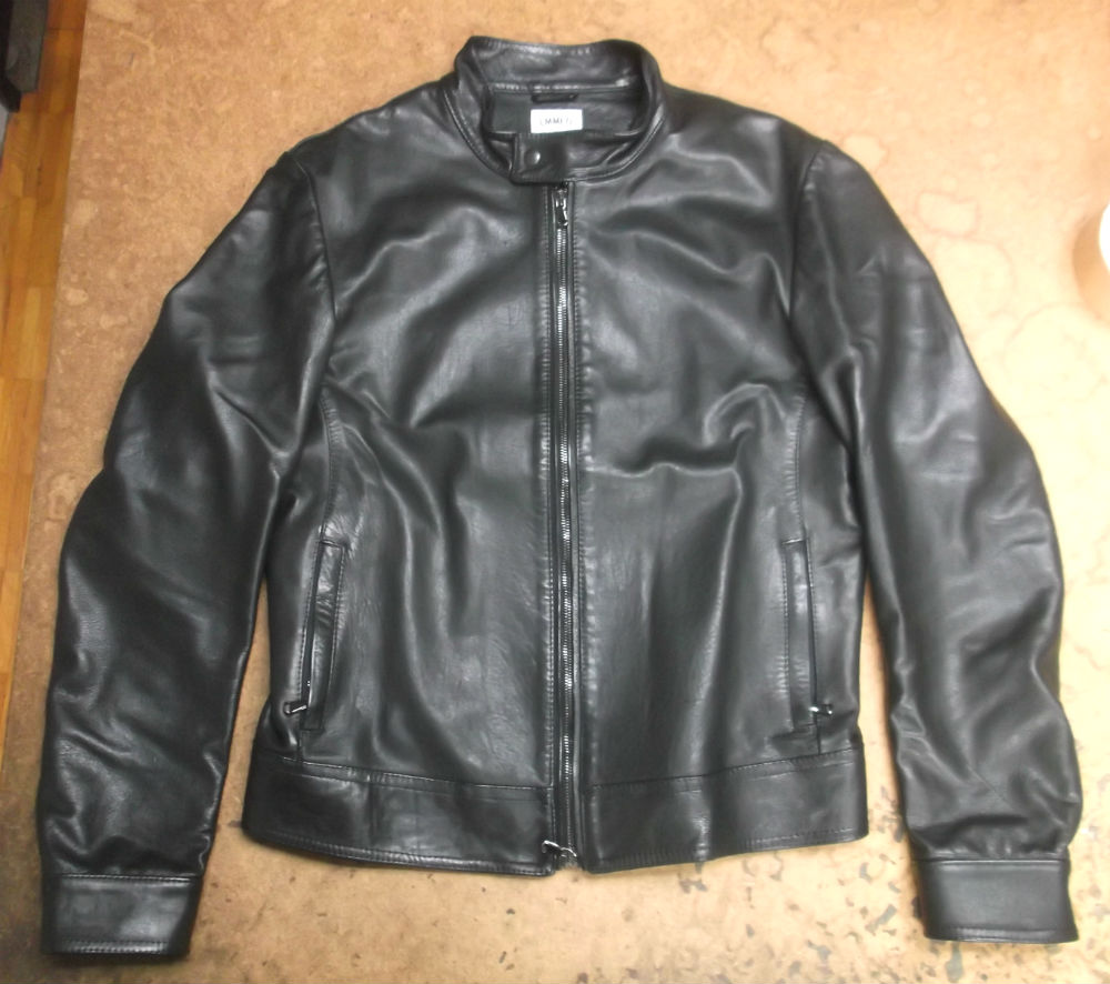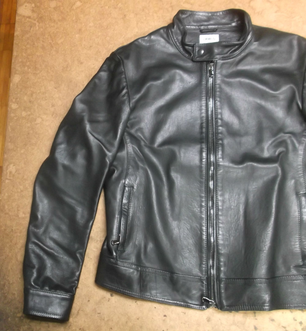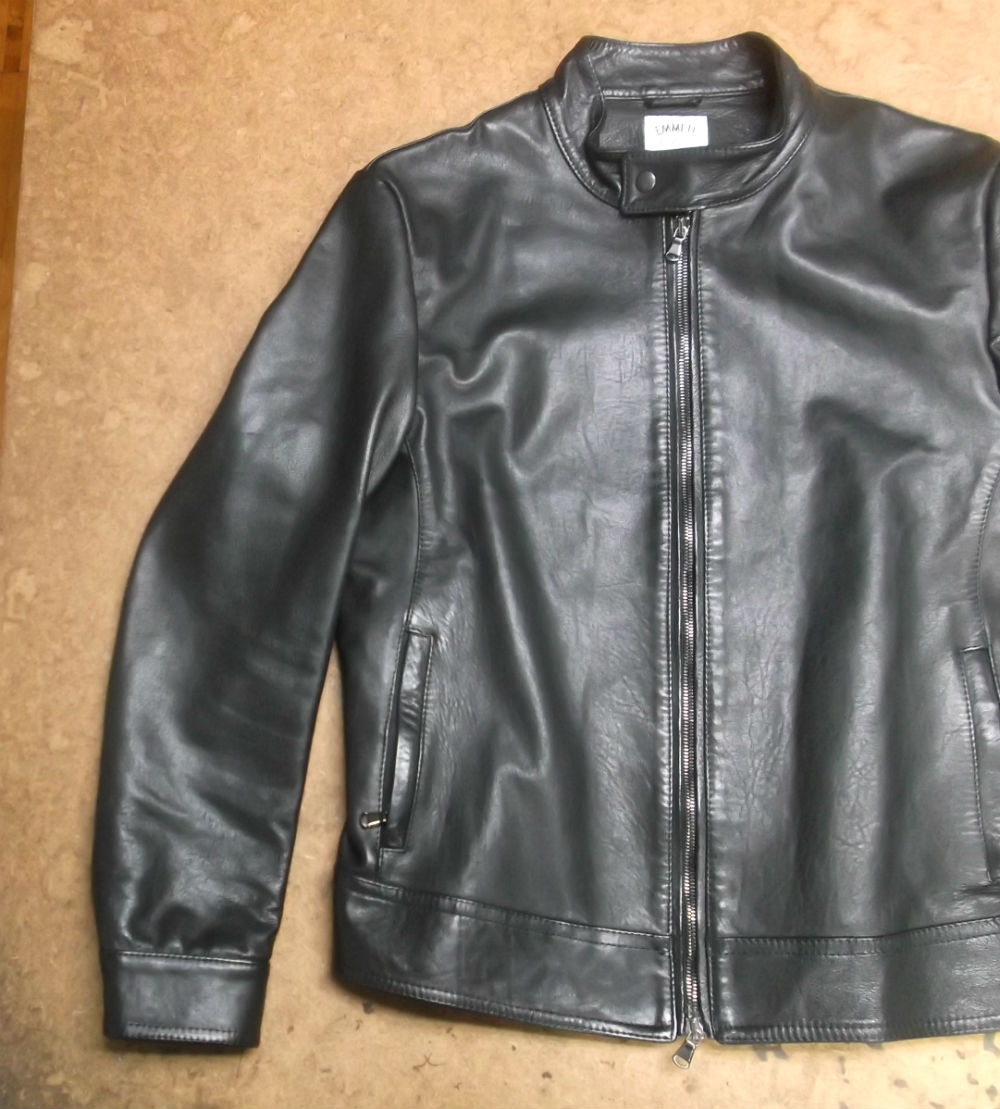 9枚目は10枚目との比較で袖丈を短くしていく前のレザージャケットの写真です。
