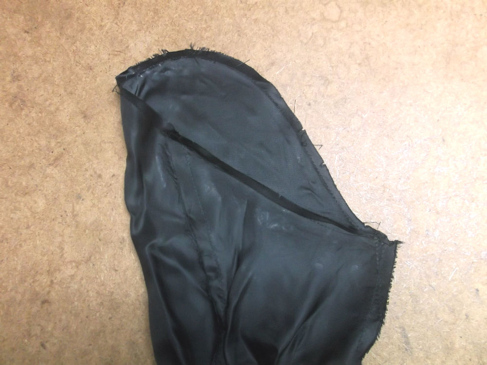 7枚目は裏地の袖丈の生地をカットした後の写真です。