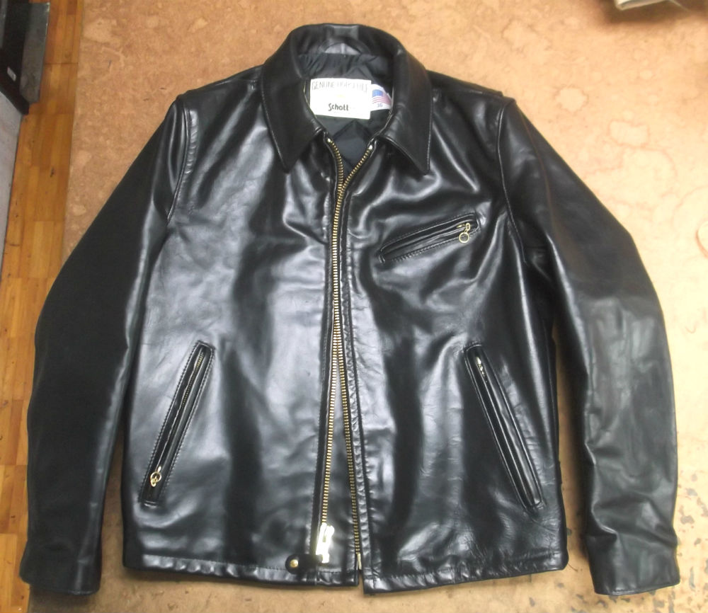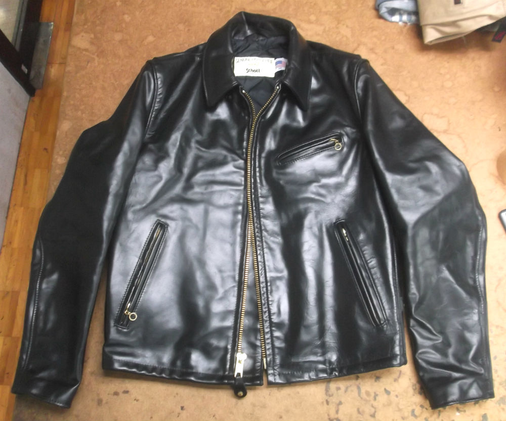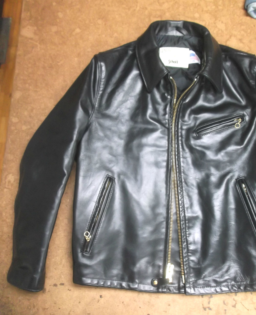 9枚目は10枚目との比較で袖丈を短くしていく前のレザージャケットの写真です。